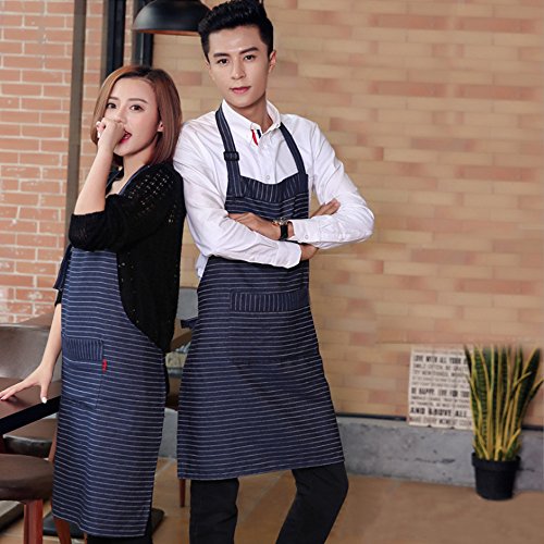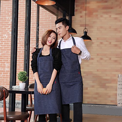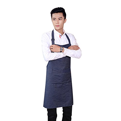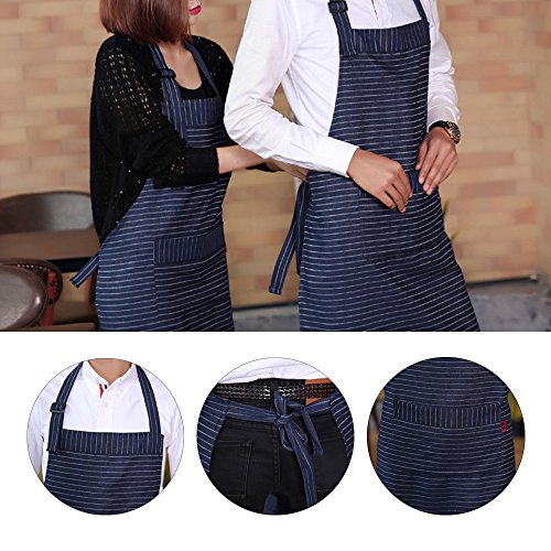Adjustable Bib Apron with Pockets, Extra Long Ties, Commercial Grade, Unisex Pinstripe Apron for Chef, Cafe Waitress (Blue)