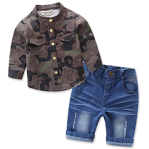 -. Feature : Material: Cotton Blend,Denim,Soft and Comfortable / Style: Camo Print Shirt,Elastic Waist Denim Short Pants / Suitable for ages:1-7 Years kids boys / Occasion: Baby shower gift;Photo Outfit;Family Party;Birthday;Daily / Package include:1x Baby Boys Long Sleeve Camo Shirt + Denim Pants