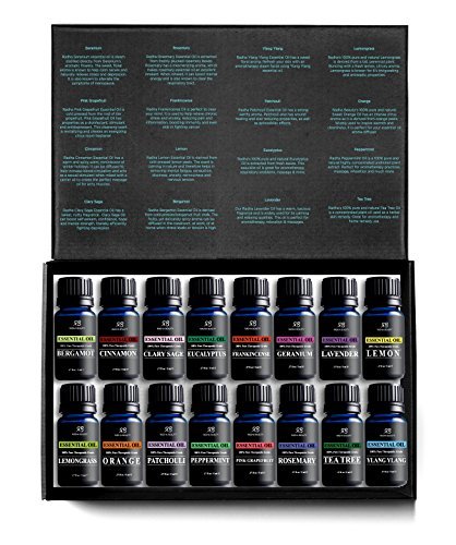 -. Feature : 100% Pure and Therapeutic Grade - No additives, fillers, bases or carriers added / Lavender, tea tree, peppermint, lemongrass, orange, eucalyptus, rosemary, frankincense, lemon / Bergamot, ylang ylang, patchouli, geranium, pink grapefruit, cinnamon, clary sage / Perfect for Gift set: Uses: Aromatherapy, Custom Massage and Body Oils, Vaporizers, Diffusers, Oil Burners, Inhalation, Perfume, Blends, Spa and Home Care, Cleaning Products; For external use only