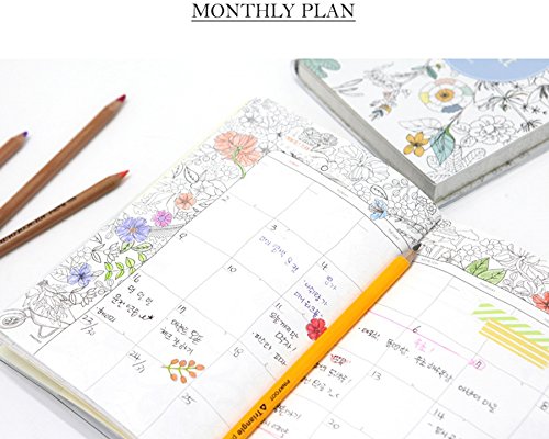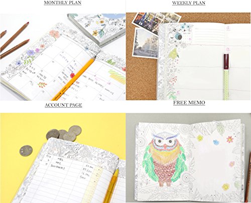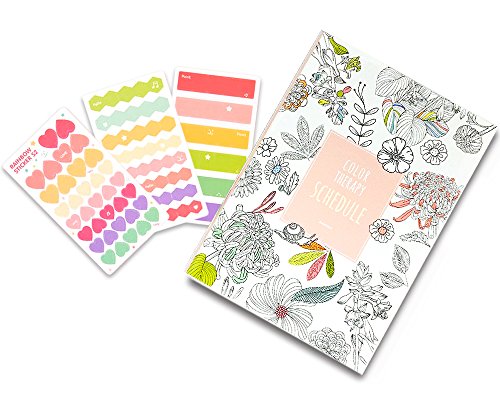 Set of 1 Undated Coloring Planner and 3 Sheets Decorative Adhesive Stickers, Color Therapy 2016 Academic Planner Organizer Agenda of 5.1" X 7.4“, Translucent Lovely Sticker Set of 4.3”x2.4”