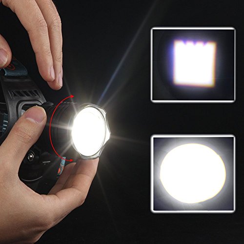 - Feature : waterproof, adjustable, Handsfree, Zoomable / HeadlampParallel battery design ;2 Rechargeable 18650 parallel design, a battery also can work. / Please take the plastic wrap off the batteries at first time use, otherwise it cant recharge. / 3 switch modes: high output, Low output, and strobe. Single button control switch Headlamp. / Great gift for friends/family, make tasks much easier