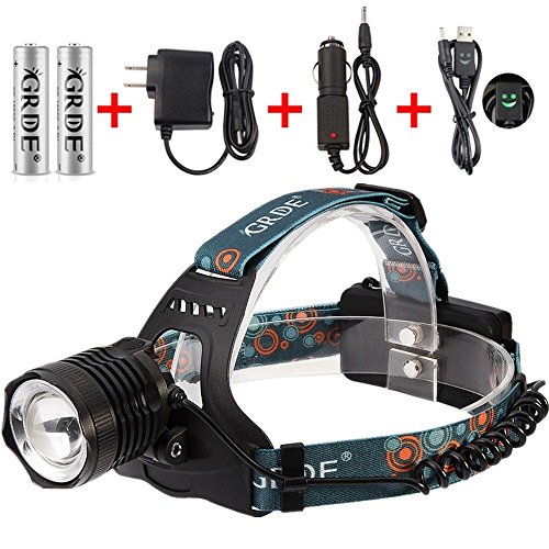 - Title : Rechargeable Led Headlamp 3-Mode Zoomable 1800Lumens Headlamp+ 2 X 18650 Rechargeable Batteries+ Wall Charger+ Car Charger+ Headlight Special USB Cable; Suitable for Working, Camping, Hunting, Running, Fishing, Reading