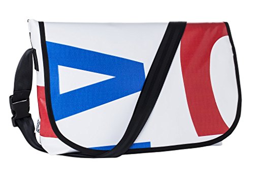 - An upcycled spin on a classic messenger bag made from reclaimed banners