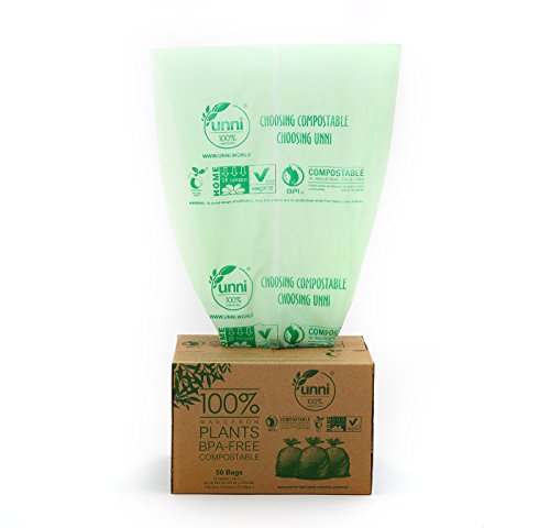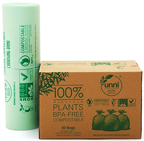 Unni ASTM6400 Certified 100% Compostable Bags, 13 Gallon, 100 Count, Heavy Duty 0.85 Milliliters, Tall Kitchen Trash Bags,Biodegradable Food Waste Bags, US BPI & European VINCETTE Certificated