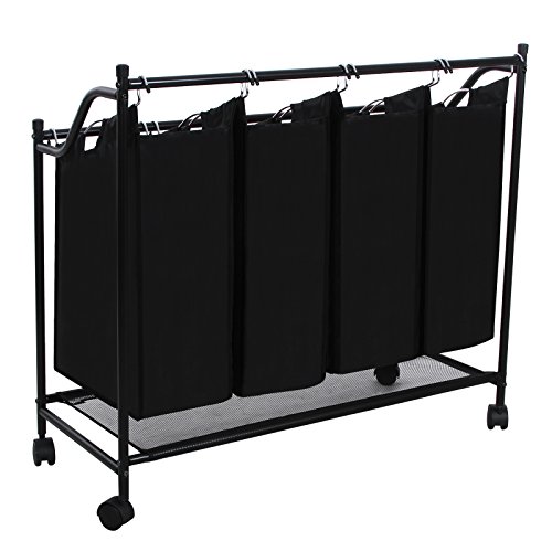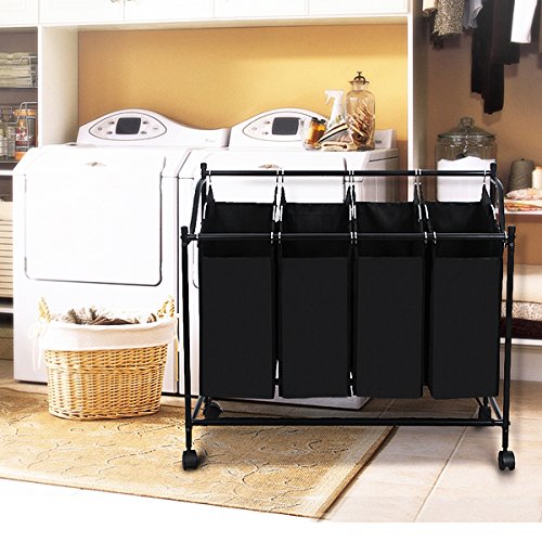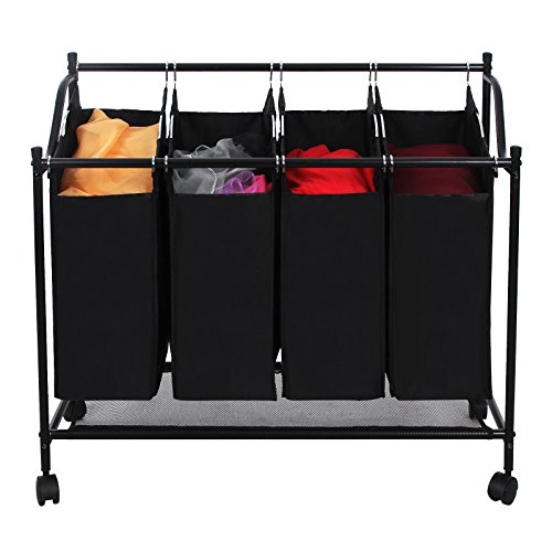 - Feature : 4 roomy individual removable Sections w' handles to differentiate different colors or types of clothes, and are convenient for carrying and sorting; / 4 Glide Wheels (two brakes), easy to maneuver. Roll the laundry sorter around your house and collect what you need; / A Net Board at the bottom for laundry supplies; Easily assemble, freely disassemble; / Durable black baking finished tubes resist rust, breathable and washable polyester cloth bags keep laundry from storing odors; / Product Dimensions: 27.6"(front H)/32.7"(back H) x 37.6"(L) x 15.2"(W); Single Bag Dimensions: 17.7"(front H)/21.7"(back H) x 13.8" x 7.9".