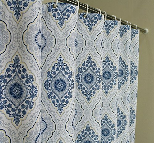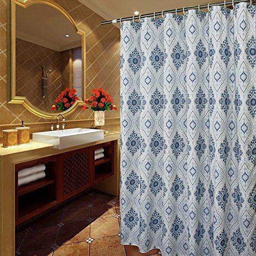 69 inches by 84-Inches Extra Long Shower Curtain- Welwo Ink Blue and White Paisley Shower Curtain