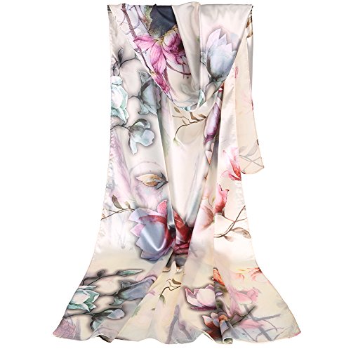 | (Xiuying Feng)/Accessories/Cold Weather Accessories/DIRECT FROM USA/Xiuying Feng Lightweight Flower Graphic Print 100% Silk Head Scarf For Hair Ladies Floral Beautiful |