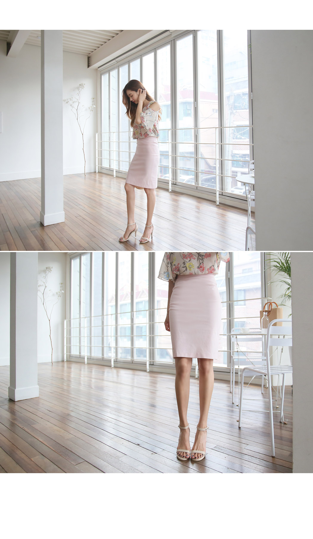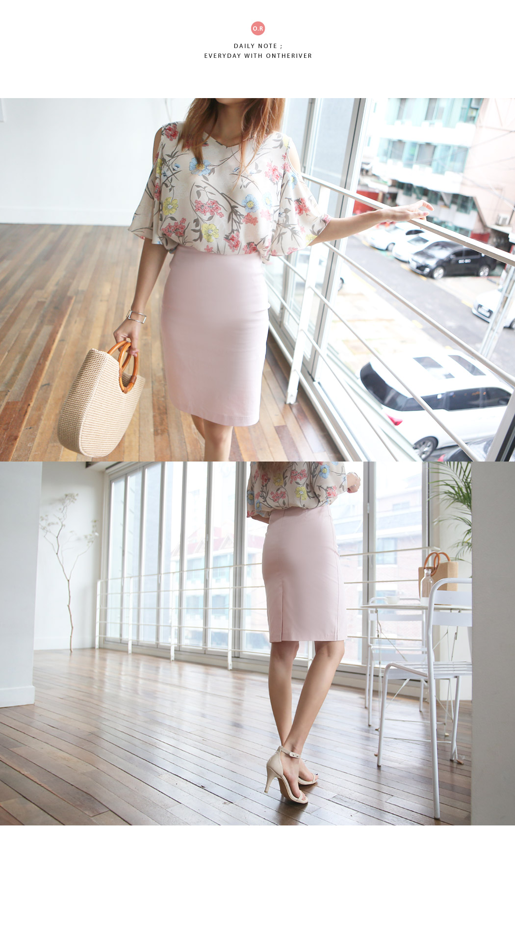 매치하기 좋으며 모델컷과 같이 베이직린넨미디스커트와 매칭하여