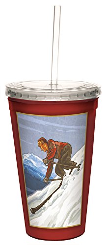 Tree-Free Greetings 98076 Paul A. Lanquist Downhill Skier Double-Walled Cool Cup with Reusable Straw, 16-Ounce