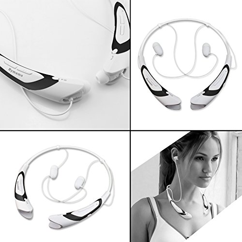 Rymemo 2015 Newest Universal Wireless Bluetooth 4.1 Music Stereo Sports Headset Headphone W/microphone Vibration Neckband Style for Cellphone (Black-white)