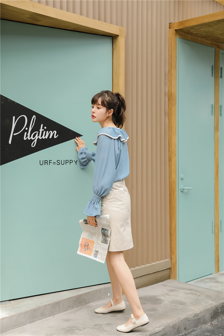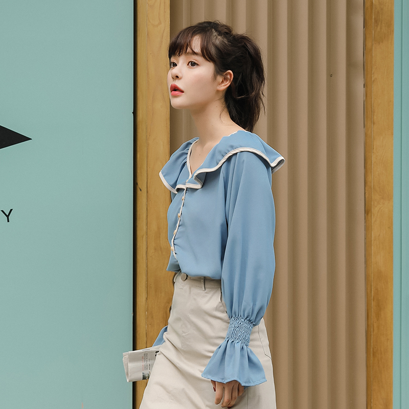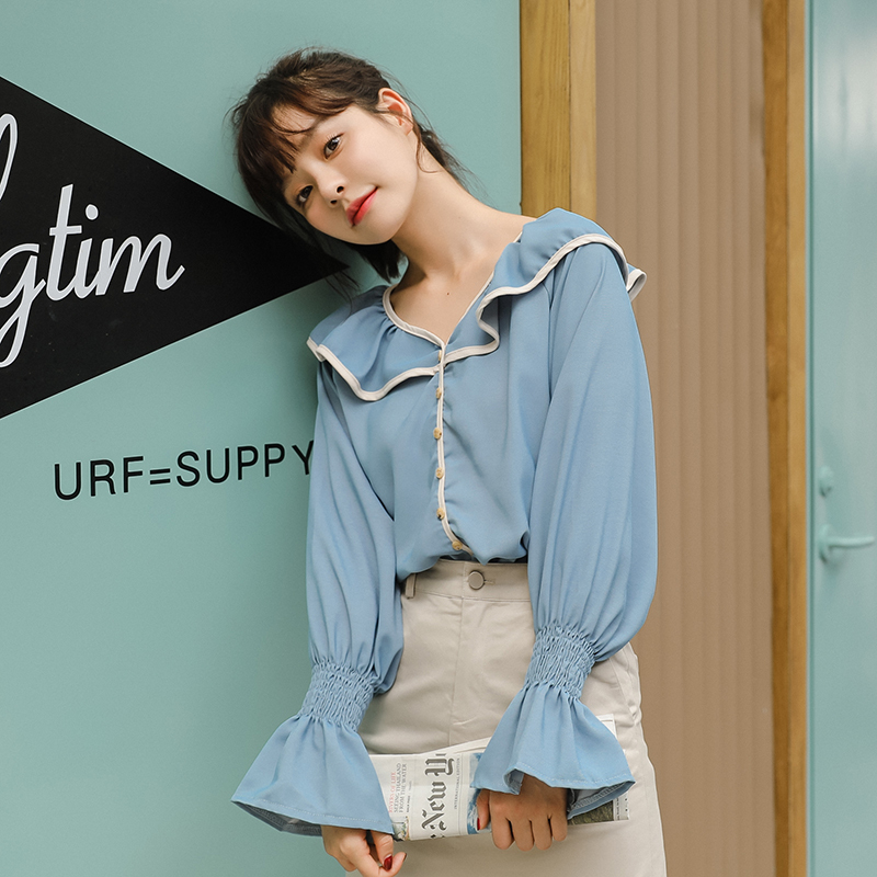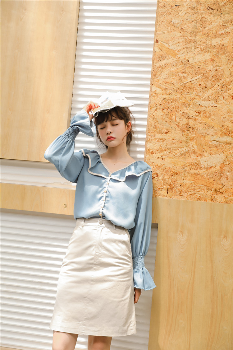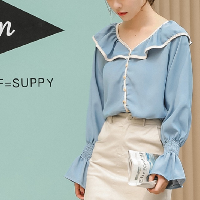 襟元と袖口のフリルがロマンティックな可愛さを引き立てるブラウスです♪