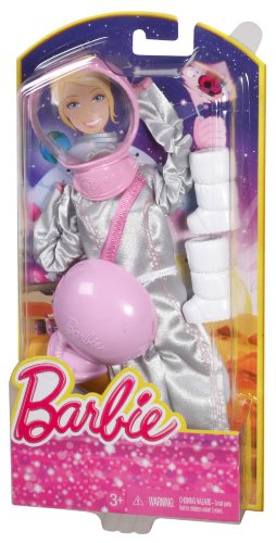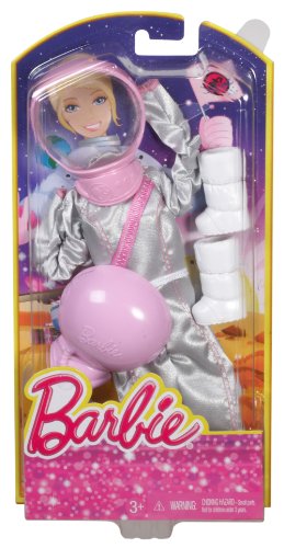 Explore new careers with Barbie Career fashions! From science to education to rescue, anything is possible! With this fashion, girls can explore the role of an astronaut (doll sold separately). The fun-ctional and fashionable outfit is perfect for playing out a girl's career dreams. And with the right tools to get the job done, she'll be able to perfect her professionalism and showcase her superb skills. A space suit features Barbie signature style with pink stitching, gathered sleeves and a pink sash detail. White space boots and a pink space helmet are out-of-this-world accessories that let girls really "work" the fashion. Includes fashion, boots and space helmet. Doll is not included. Fashions fit most Barbie dolls. Ages 3 and older.Feature