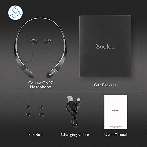 COULAX Bluetooth Headphones CX07 Wireless Neckband Headset IPX7 Waterproof Stereo Magnetic In-Ear Earbuds with Mic (10 Hours Playtime, CVC 6.0 Noise Cancelling,Silicone Gel Surface)
