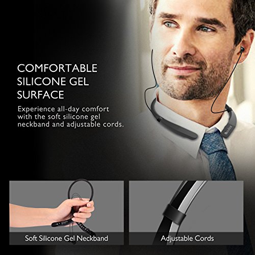CONVENIENT MAGNET DESIGN: Via magnetic earbuds in the bluetooth headphone, Lightweight neckband and compact, multi-size accessories are designed to provide lasting comfort and hold., Earbuds magnetically clip together for easy, tangle-free use.