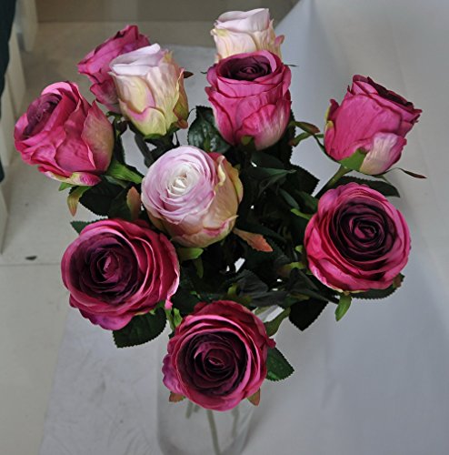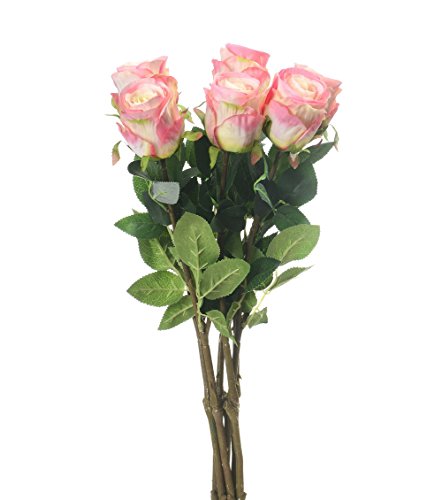 Pack of 3 Artificial Rose Bud Single 30" Stem with Silk Green Leaves for Flower Bouquets Wedding Decorations - Pink