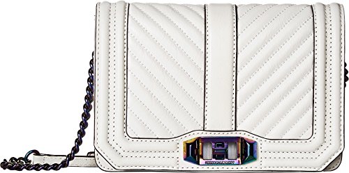 This petite Rebecca Minkoff cross-body bag is detailed with a quilted top flap. Slim back pocket. Polished turn lock in front. Lined interior with 4 card slots. Slim handle and chain shoulder strap.
