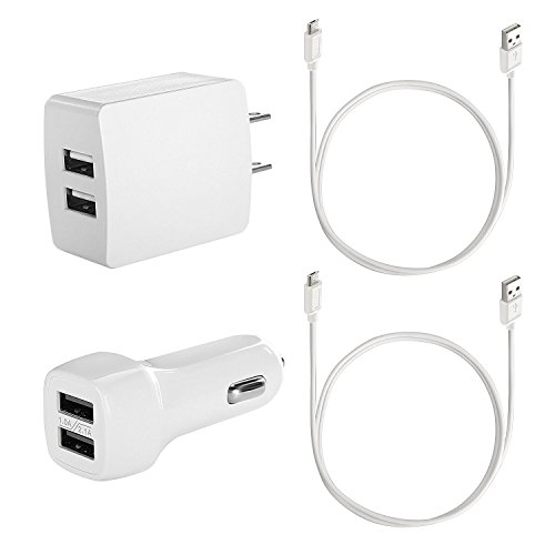 - Package includes: Includes 2.0Amp AC Home Wall Charger (1), 2.0Amp Dual-port Car Charger (1), and 3.5ft A to Micro B High-speed Charging & Data Sync Cables for Android Devices (2);
