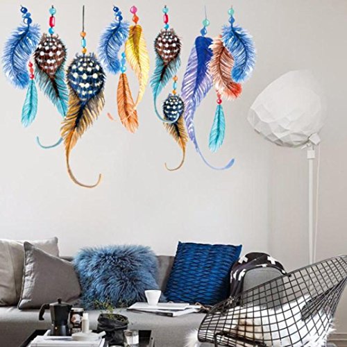 -. Title : Wall Stickers, Hatop New Creative Color Feathers Bedroom Sitting Room Background Wall Stickers