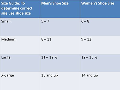 Small: Men's Shoe Size 5 - 7 / Women's Shoe Size 6 - 8 Medium: Men's Shoe Size 8 - 11 / Women's Shoe Size 9 - 12 Large: Men's Shoe Size 11 - 12.5 / Women's Shoe Size 12 - 13.5 X-Large: Men's Shoe Size 13 and up / Women's Shoe Size 14 an up 0