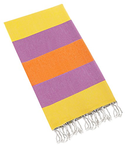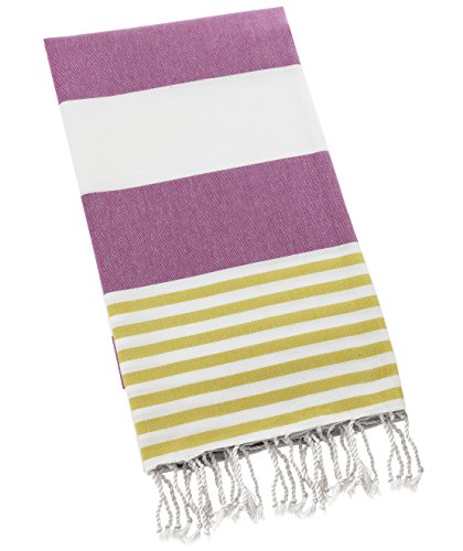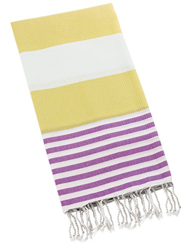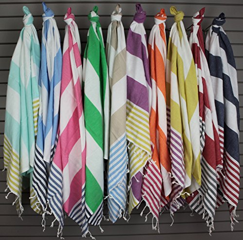 Velvety soft against your skin, these Peshtemal towels are generously sized Hammam-style towels inspired by the legendary spas of Turkey. As an alternative to the standard terry cloth towel you are used to, these Peshtemal towels are flat and tightly woven for strength and durability. Use them in your bathroom, as a chic sarong, a beach towel or as an impromptu picnic blanket. Featuring a stylish handcrafted fringe, they are lightweight, very absorbent, quick drying, and perfect for traveling as they take up so little space. The Peshtemal is highly absorbent and dries very quickly, light in weight and takes up little space meaning it's the perfect travel companion. It's great in bathrooms, pools, spa's, beaches, sport facilities, yoga centers, massaga parlor, guest towel, gym, fitness and most importantly baby care, the possibilities are endless!