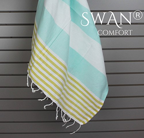 Swan Comfort 100% Cotton Pestemal Turkish Bath Towel, 39" x 70" - Ice Blue - Yellow