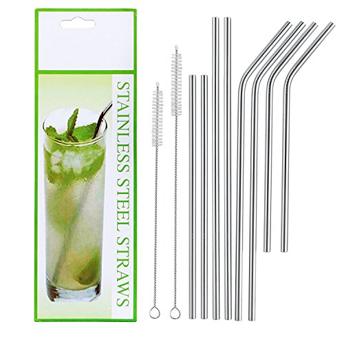 Set of 6 straws, included 2 cleaning brush. 8.5" long Extra Long Stainless Steel drinking straws.