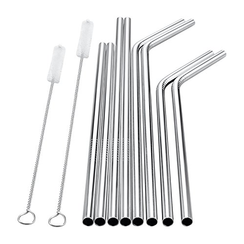SLDHR Stainless Steel Drinking Straws, Set of FDA-Approved Reusable Metal Drinking Straight Straws, Fits 20 & 30 oz Yeti Tumbler Rambler Cups, Cleaning Brush Included(4 Straight + 4 Bent + 2 Brushes)