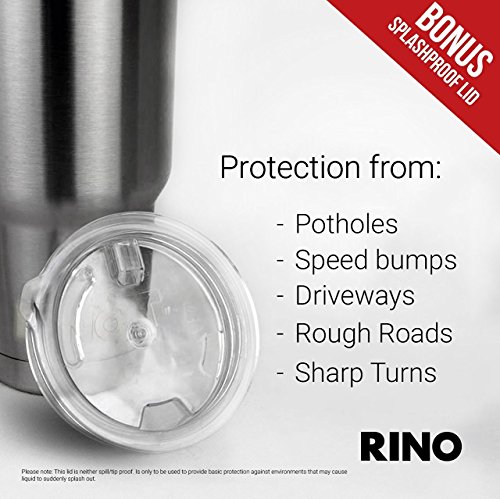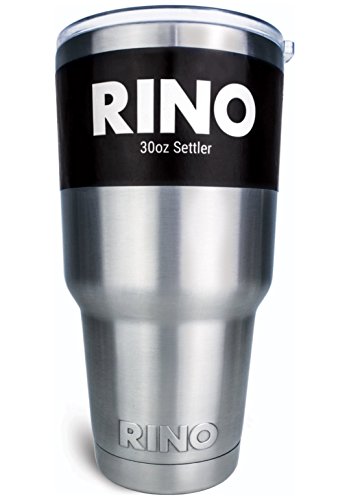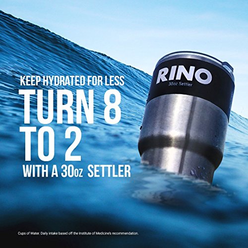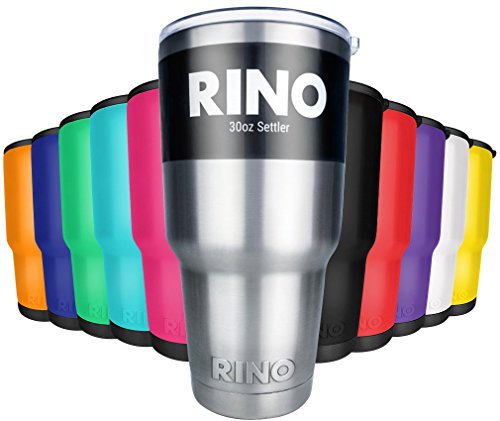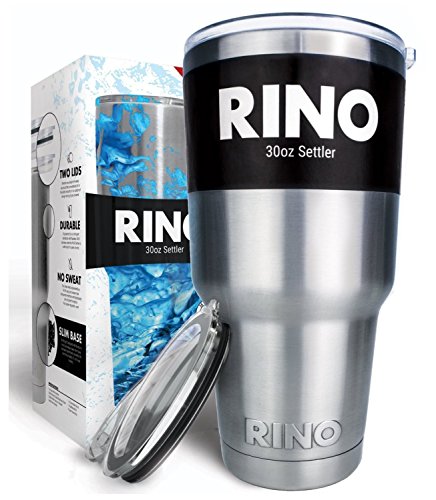 RINO 30 oz Tumbler - 24hr Ice Cold - 2 Free Lids - Double Wall Vacuum Insulated Premium Stainless Steel - New Slim Base Gauranteed to fit Vehicle - 30oz Settler