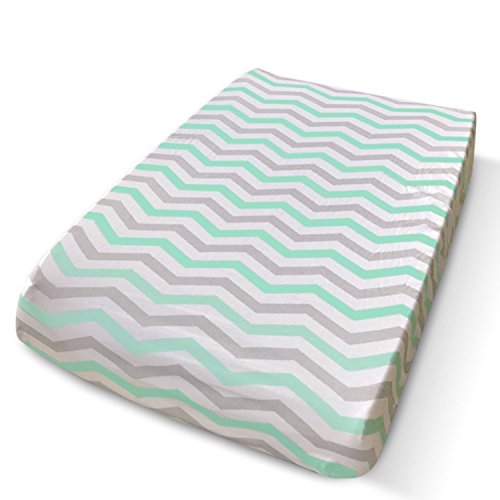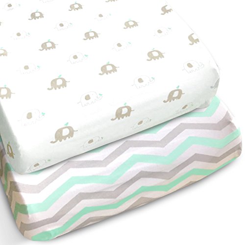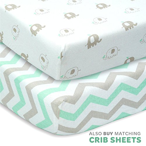 Changing Pad Covers 2 Pack Extra Soft Jersey Cotton - Gray and Mint Chevron with Elephants - TOP QUALITY Nursery Bedding for Boy and Girl