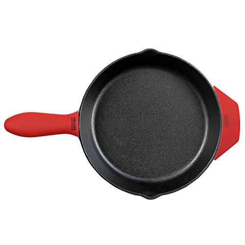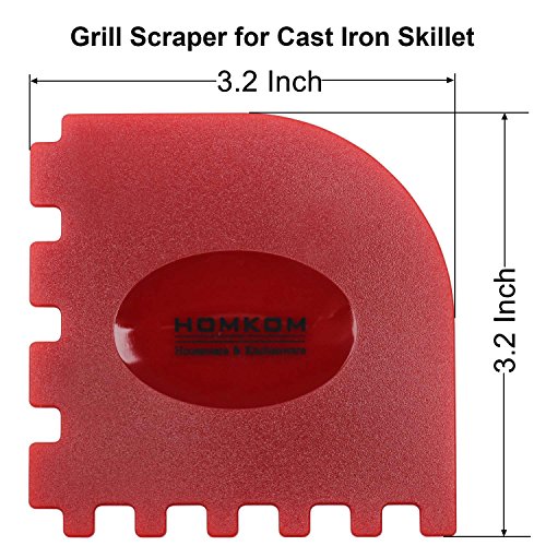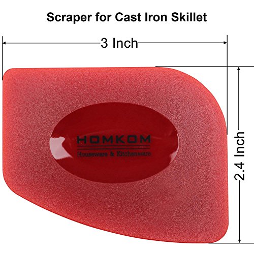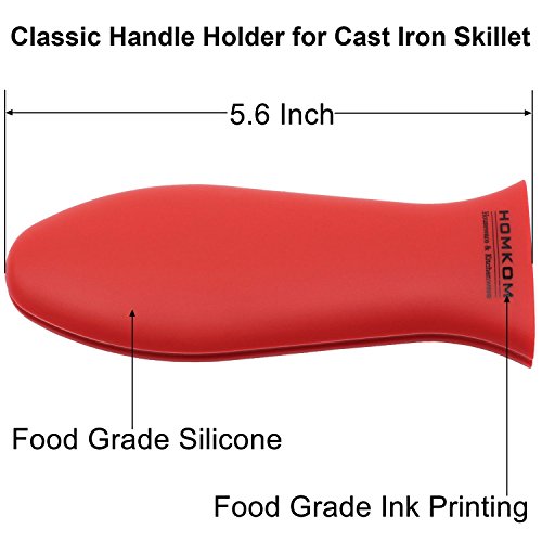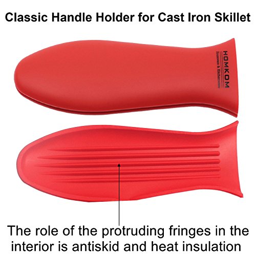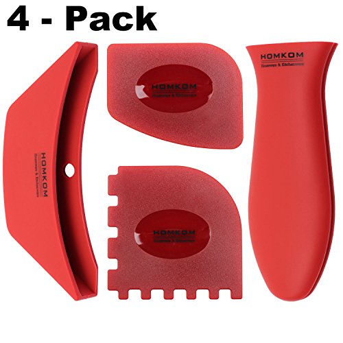 HOMKOM - 4 Pack Cast Iron Skillet Silicone Handle Holder Pan / Pot Scraper Grill Scraper with BPA Free (Red)