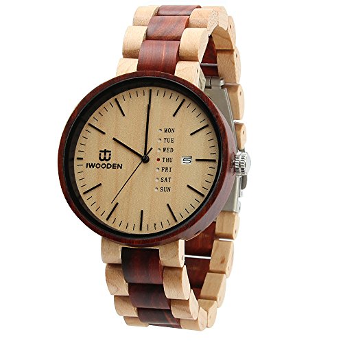 -. Title : IWOODEN Maple Wood Mens Watch Analog Quartz Movement Date Display Wrist Watch for Men With Gift Box