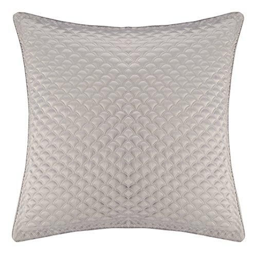 Five Queens Court Zarah Satin Damask Embroidered Euro Pillow Sham, Silver