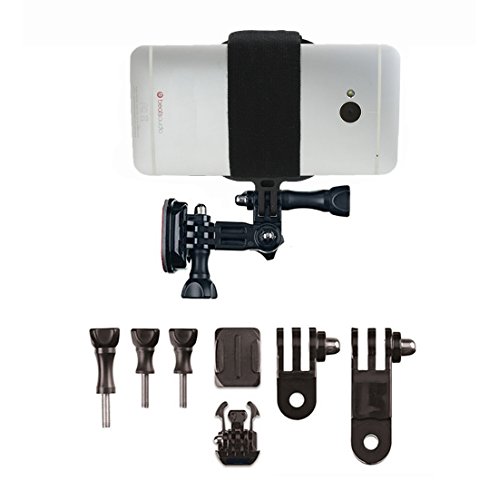-. Feature : ACTION MOUNT ADAPTER - Record POV footage with this helmet mount kit and Action Mount smartphone adapter. This suction cup/strap mount works with any phone, regardless of case. It can be used with a case, or waterproof case. / SUPER STRONG HOLD - Easy to operate, just attach your phone screen to the facing suction cups, wrap the elastic strap - attach Velcro, and you're ready to shoot. No matter what your phone model/size, this product will fit. / WHAT YOU GET - Includes flat and curved mounts with quick clip, 3M adhesives, 3-way Pivot, thumb screw, Aluminum wrench and POV smartphone adapter. The patent pending POV mount provides a secure hold on your phone so it will stay in place. The unique design give you the strongest hold on the market! / GOPRO COMPATIBLE PARTS - Helmet mount can also be used for attaching your quick-release GoPro camera. Try this helmet adhesive mount for capturing hands free video with the HD device you already own (or use your old phone). / IT MAKES SENSE - This product is a great alternative if you can't afford a GoPro, and makes a great gift for anyone with a smartphone.