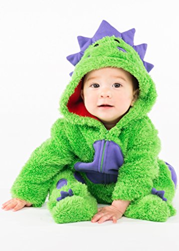-. Brand : Fun Stuff -. Color : Green -. Department : baby-boys -. Feature : Cozy long hair polar fleece / Zip-up front for easy dressing / Adorable embroidered face on hood and dinosaur-head footies / Perfect for dress-up, Halloween or every day wear / Machine washable -. ProductGroup : Apparel -. ProductTypeName : BABY_COSTUME -. Title : Baby Boys' Plush Fleece Aniamal Costume Coverall with Footies