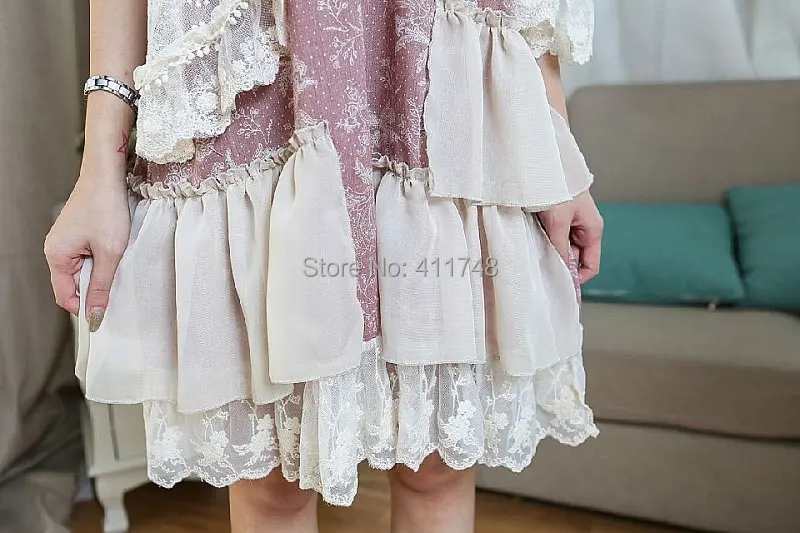 森ガールレースシフォンパッチワークフリル女性サマードレス緩いカジュアルサラファンプライアvestido oncinhaファルダropa mujer服