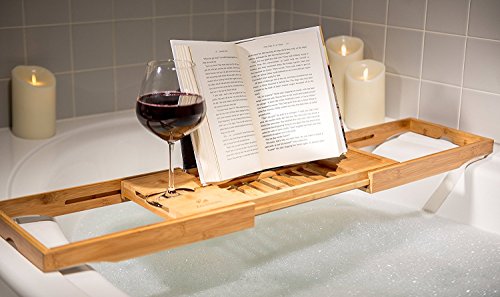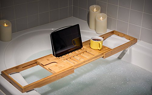 Zenheim Luxurious Bamboo Bathtub Caddy/Tray with Extendable Sides
