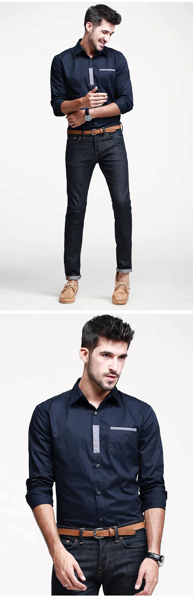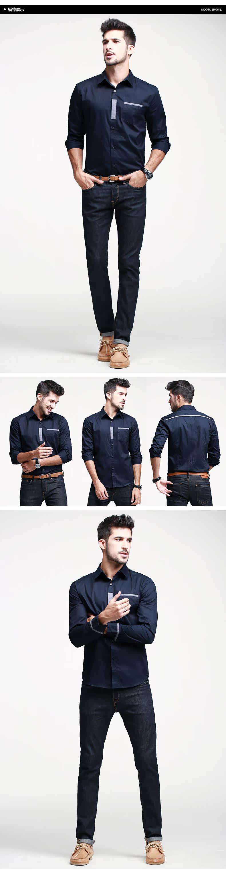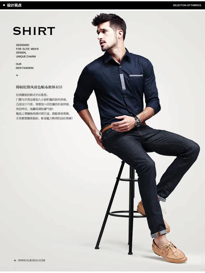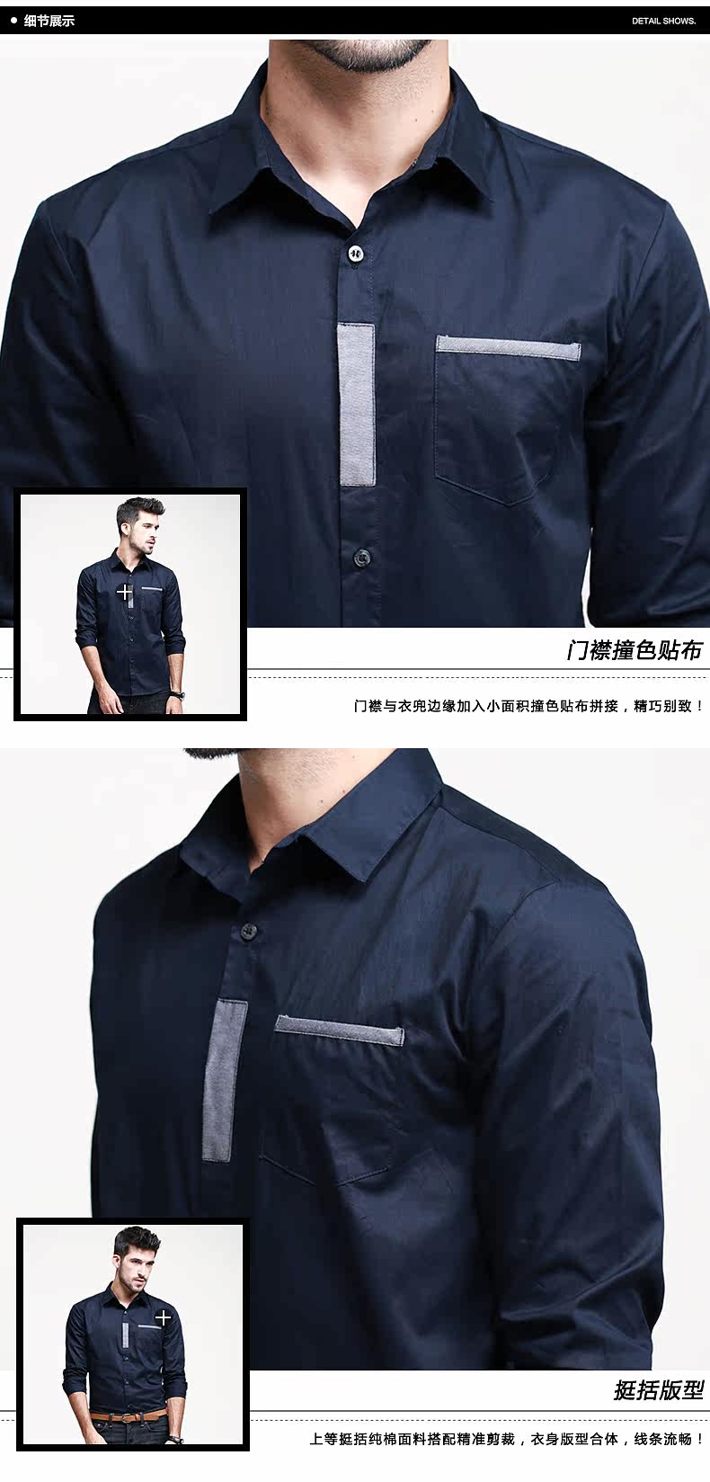 ①款式:韩版轻熟风撞色贴布修体衬衫
