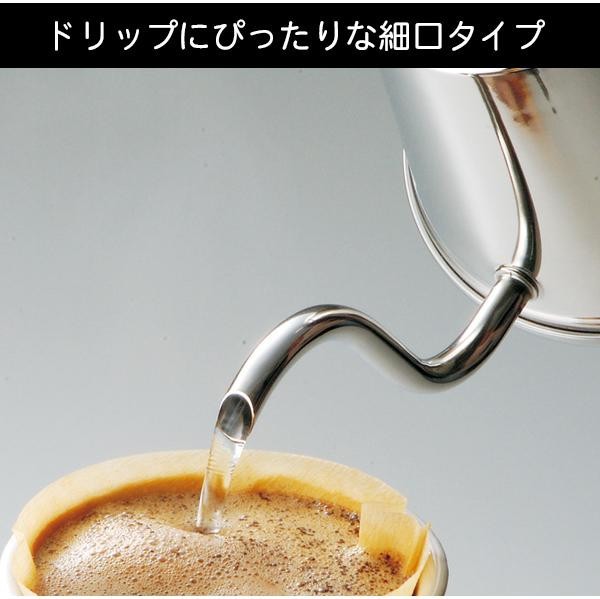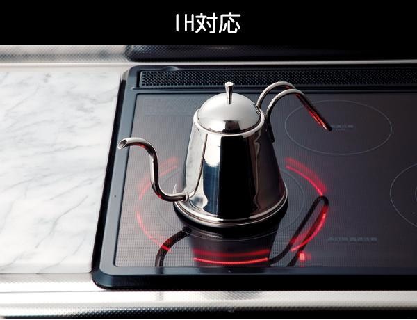 コーヒーのドリップにぴったりな細口タイプのポットです。ガス火にもIHにも使えます。 |
