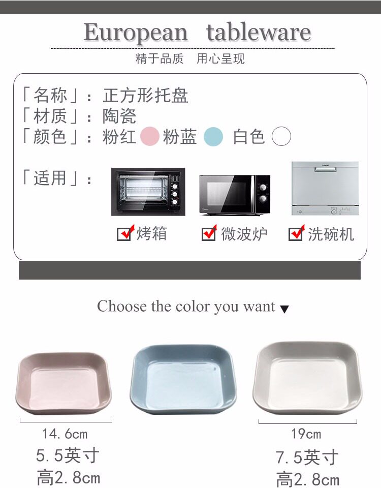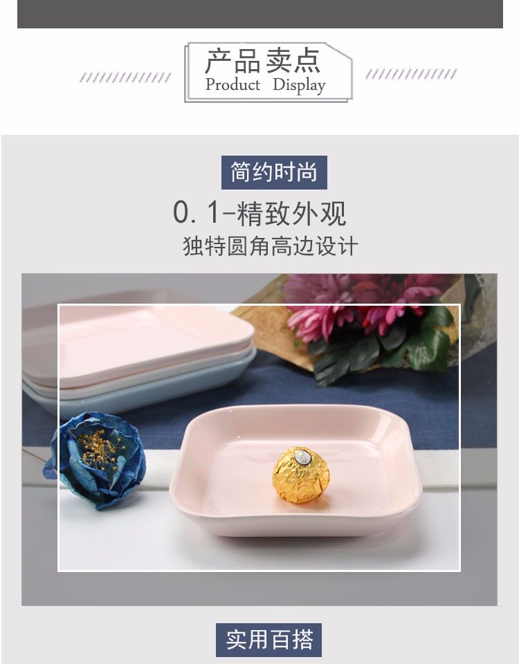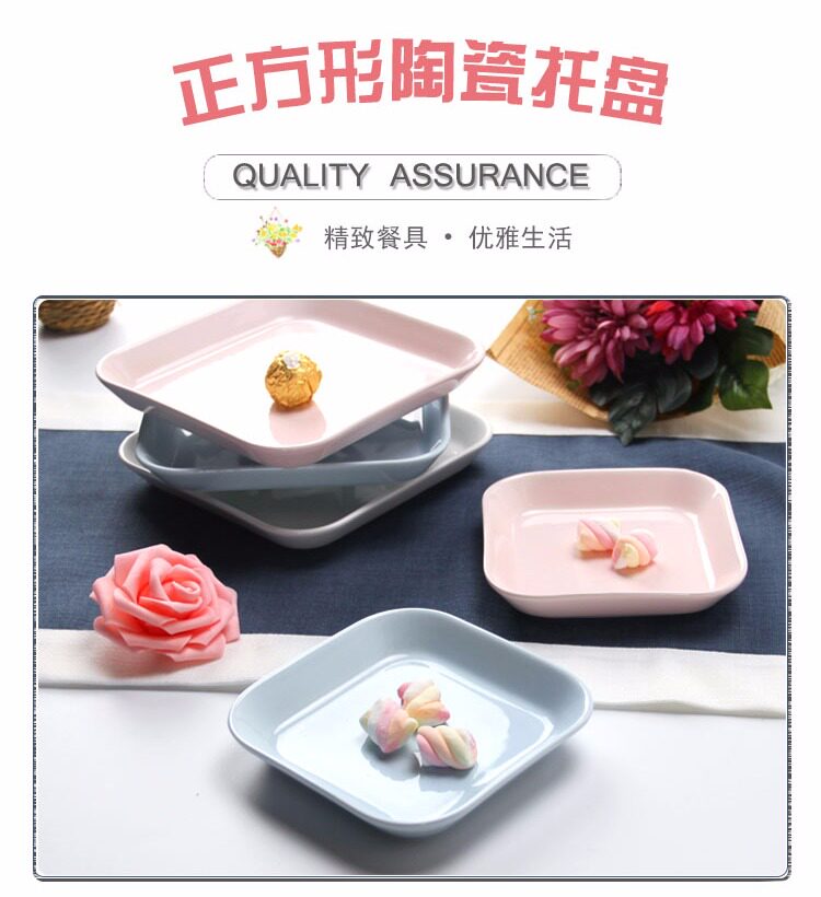小托盘方盘可爱 北欧儿童早餐点心盘陶瓷盘子 家用创意干果零食盘