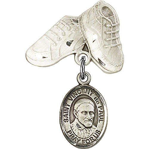 -. Title : Sterling Silver Baby Badge with St. Vincent de Paul Charm and Baby Boots Pin 1 X 5/8 inches