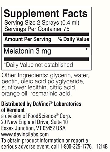 Studio : DaVinci Laboratories of Vermont Publisher : DaVinci Laboratories of Vermont Binding : Health and Beauty Product Description A dietary supplement to support normal sleep.* Each serving contains 3 mg of the highest quality synthetic Melatonin in a liposomal delivery system. 0