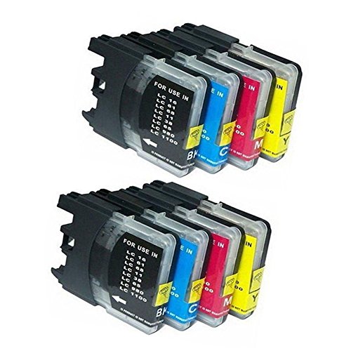 QINK 8 Pack (2BK 2C 2M 2Y) LC-61 LC61 Ink Set Fits Brother DCP-J140W, MFC-250C, MFC-255CW