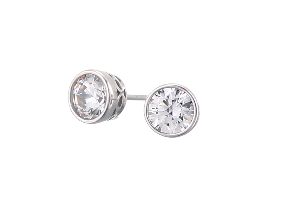 Plated Sterling Silver Swarovski Zirconia Bezel-Set Stud Earrings