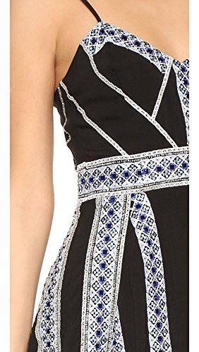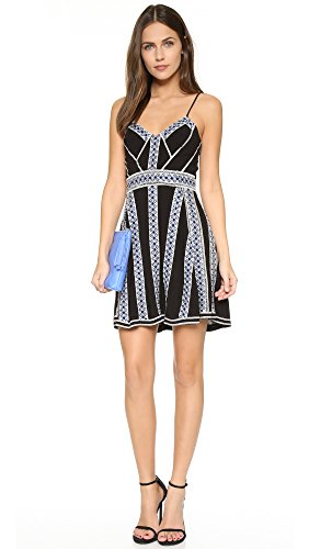 Intricate embroidered stripes and rows of petite beads lend a glamorous touch to this Parker mini dress. Smocked elastic panel in back. Adjustable shoulder straps. Hidden back zip. Lined.