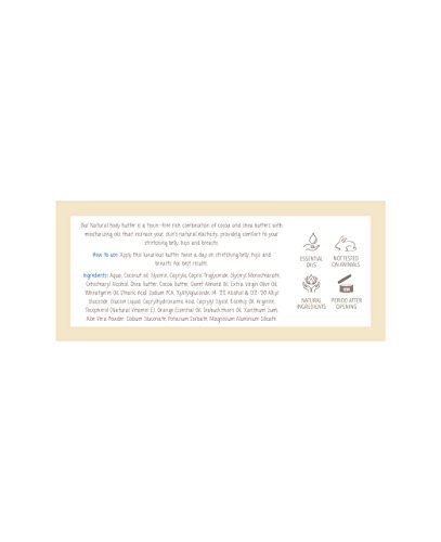 -. Feature : THE MOMS CO. NATURAL BELLY BUTTER FOR PREGNANCY - This mum to be body butter from our range of pregnancy safe skin care is ideal for expecting moms and helps combat the dry, itchy, stretching skin that usually comes with pregnancy. Safe for use during and after pregnancy. / THIS PREGNANCY BELLY BUTTER IS ALL NATURAL - Our natural body butter is a toxin-free pregnancy cream with a rich combination of cocoa and shea butter, moisturizing oils that increase your skin's natural elasticity, providing comfort to your stretching belly, hips and breasts. Ideal for use as a pregnancy stretch mark cream and after pregnancy cream with pregnancy cocoa butter. / NATURAL AND VEGAN BODY BUTTER MADE WITH A PERFECT BLEND OF POWERFUL & NURTURING PLANT OILS - Vitamin-C rich Rosehip Oil helps stimulate collagen synthesis while the Natural Vitamin E prevents skin damage. Seabuckthorn Oil promotes skin elasticity and skin regeneration while cocoa and shea body butter help nourish and encourage skin's natural elasticity and prevent pregnancy dry skin. / OUR PREGNANCY SAFE PRODUCTS ARE MADE WITHOUT COMPROMISE - Our pregnancy belly cream with Vitamin C rich rosehip oil helps stimulates collagen synthesis. Massage onto skin after showering or bathing, or anytime you need extra pampering. Natural Vitamin E helps prevent skin damage, making this an ideal post pregnancy belly cream. / NATURE IN, TOXINS OUT : THE MOMS CO. BODY BUTTER CREAM CONTAINS NO HARMFUL OR SYNTHETIC INGREDIENTS - Our belly cream for pregnancy from our range of best pregnancy products meets standard of EWG Verified, Made Safe, Whole Foods Premium Personal Care, Safe Cosmetics and is made without Mineral Oil, Sulphates (SLS, SLES), Parabens, DEA/TEA, Phenoxyethanol, Synthetic Fragrances, PEGs and many other potentially harmful chemicals.