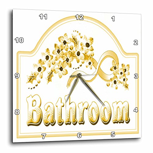 Victorian Yellow Gold Bathroom Sign Wall Clock is a wonderful compliment to any room in your home or office. Made of durable high grade aluminum. This clock has a high gloss mirror like, UV coated, scratch resistant finish and is suitable for a moist environment. Available in multiple sizes, requires one AA battery; not included. Battery box is not covered.Feature