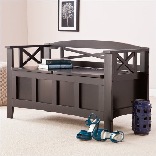 -. Feature : Features internal storage and a split seat which serves as two hinged lids for easy access / Painted black finish / Rubbed edges provide a beautiful distressed look / Max weight capacity: 250 lbs. / Constructed of MDF and pine