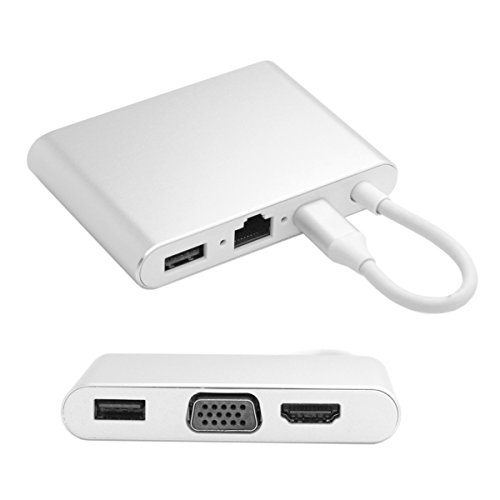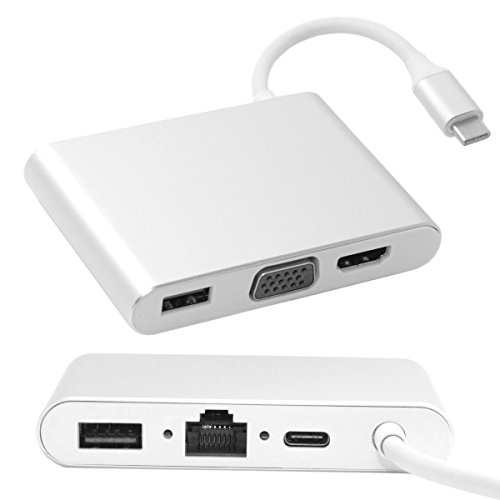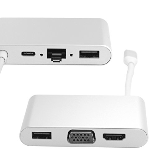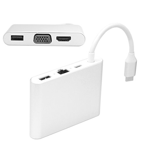 -. Binding : Electronics -. Brand : cablecc -. EAN : 0652065547497 -. Feature : Work for New Macbook & Chromebook & XPS13 with Type-C Port / The USB-C Multiport Adapter lets you connect your MacBook with USB-C port to an HDMI/VGA display, while also connecting a standard USB device and a USB-C charging cable. / This adapter allows you to mirror your MacBook display to your HDMI/VGA TV or display in up to 1080p HD.(Only one monitor can work at same time) / Use the standard two USB port to connect devices such as your flash drive or camera or a USB cable for syncing and charging your Phone. / You can also connect a charging cable to the USB-C port to charge your MacBook. -. Label : Cablecc -. Manufacturer : Cablecc -. PackageQuantity : 1 -. ProductGroup : PC Accessory -. ProductTypeName : COMPUTER_ADD_ON -. Publisher : Cablecc -. Studio : Cablecc -. Title : Cablecc USB-C USB 3.1 Type C to HDMI & VGA & USB HUB OTG & Ethnernet & PD Charger Dock Adapter for Laptop -. UPC : 652065547497