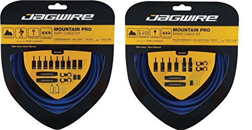 Studio : JAGWIRE Publisher : JAGWIRE Product Description SHIFT KIT.. KEVLAR REINFORCED FOR COMPRESSIONLESS SHIFTING PERFORMANCE.. TEFLON COATED CABLES ARE SINGLE-ENDED SHIMANO/SRAM.. HOUSING LENGTH: 2500MM.. CABLE LENGTH: (FRONT) 1500MM, (REAR) 2300MM.. LEAD FREE HOUSING COATINGS.. INCLUDES FERRULES, TIPS, DONUTS AND A SEALING LINER.... BRAKE KIT.. KEVLAR REINFORCED FOR COMPRESSIONLESS BRAKING PERFORMANCE.. TEFLON COATED CABLES ARE SINGLE-ENDED SHIMANO/SRAM.. HOUSING LENGTH: 3000MM.. CABLE LENGTH: (FRONT) 1350MM, (REAR) 2350MM.. INCLUDES FERRULES, TIPS, DONUTS AND A SEALING LINER.. WORKS WELL WITH MECHANICAL DISC BRAKES.. 0
