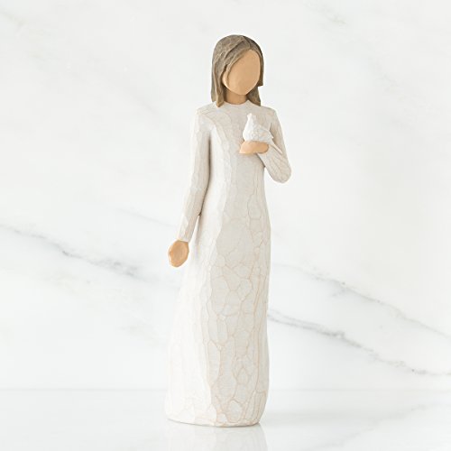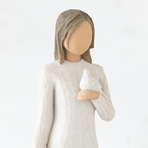 . With Sympathy. Girl Holding Dove Figurine. Part of the Willow Tree collection by Susan Lordi. Made from resin. Approximately 9 inches tall (22cm). Includes original manufacturers box and packaging. Made by Demdaco. May your memories bring you peaceFeature